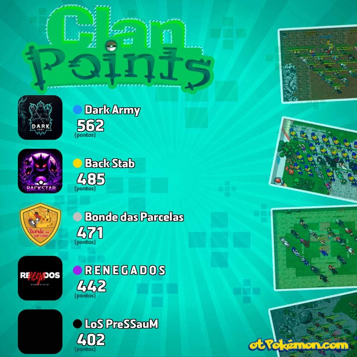Parabéns aos clãs que mais pontuaram no mês de novembro.